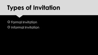 The document is a formal invitation guide by Andi Marwan Paris, outlining the characteristics and structures of formal invitations. It describes the function of formal invitations for events like graduations and weddings, emphasizing clarity and conciseness in wording. Key structural components include a title, greeting, event information, RSVP, and signature.
