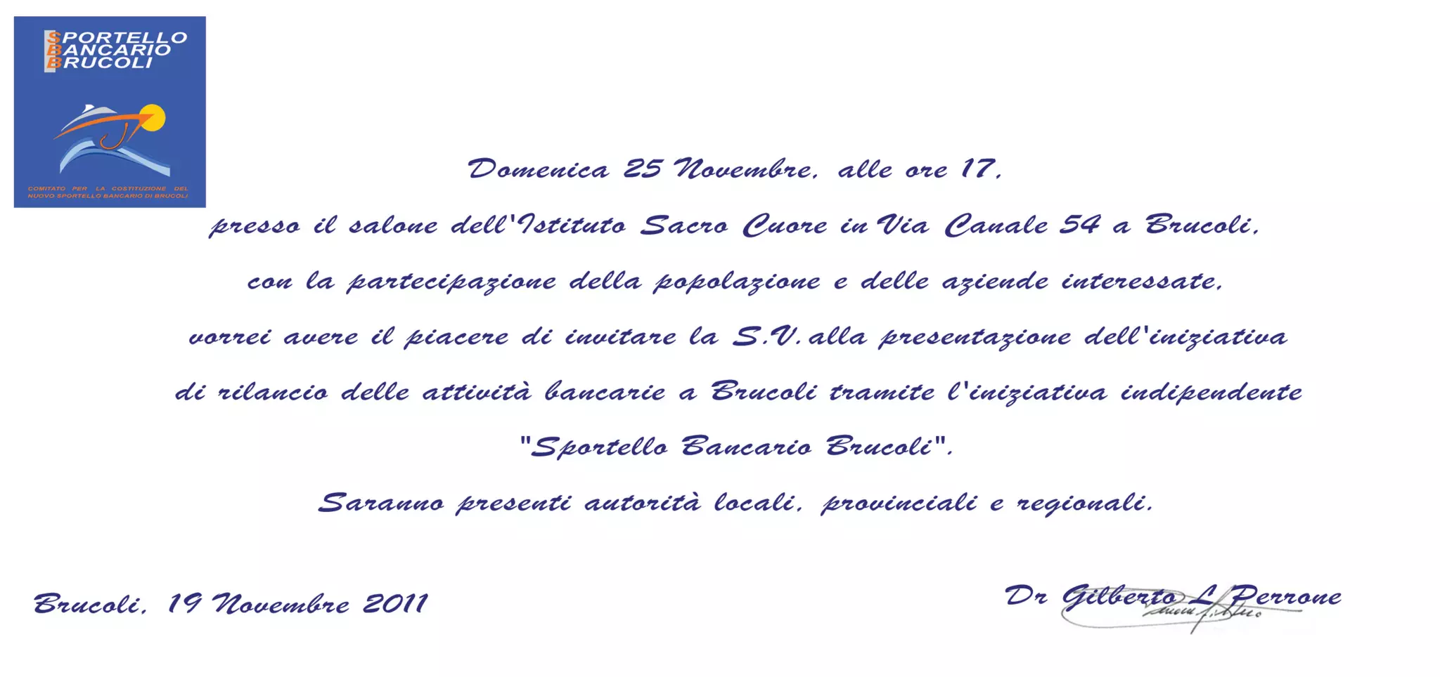 Invito alla presentazione dei criteri del piano industriale per l'apertura di una nuova banca a Brucoli