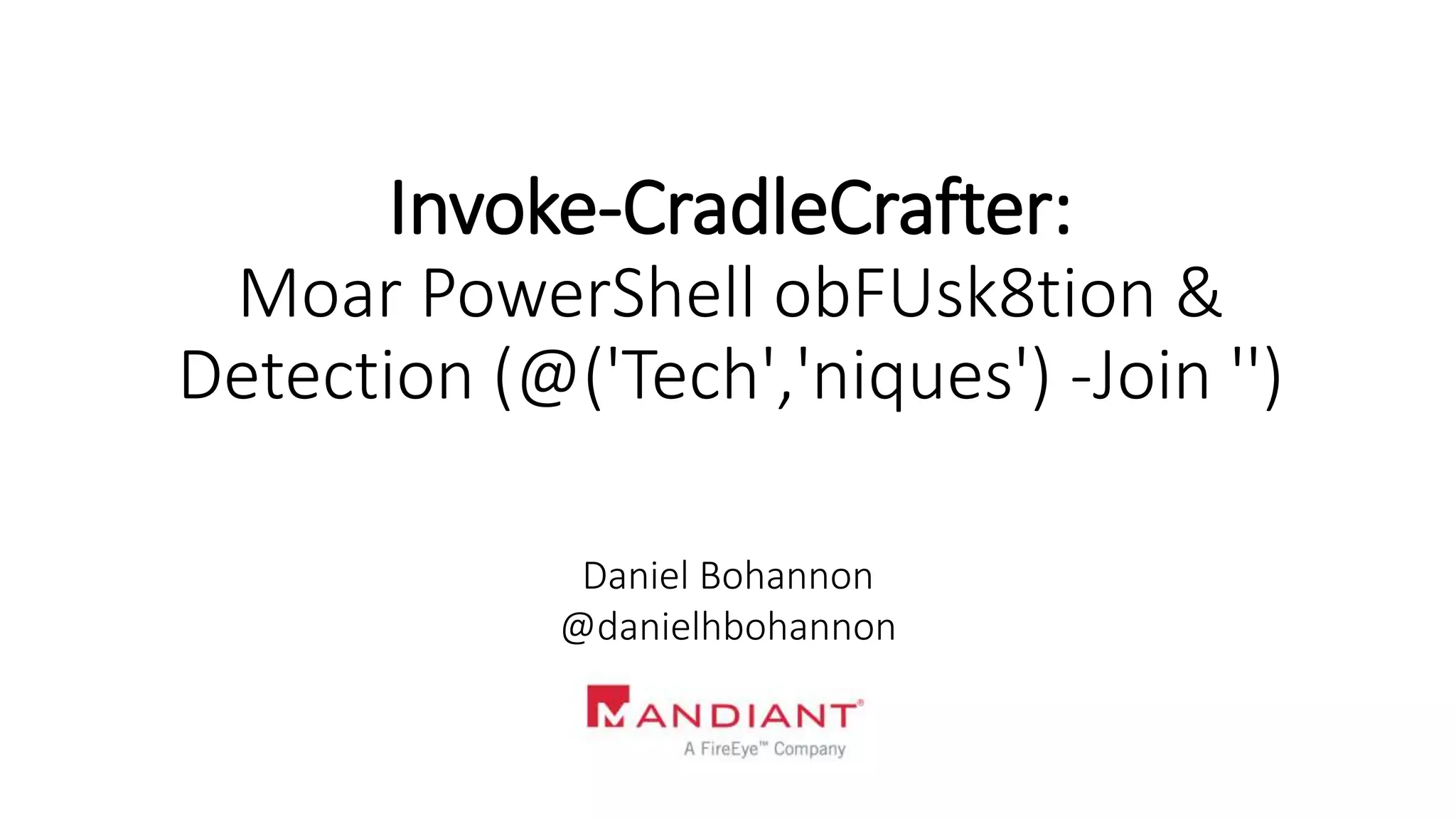 The document presents insights by Daniel Bohannon on PowerShell obfuscation techniques and detection, emphasizing the vulnerability of organizations running outdated PowerShell versions. It introduces 'invoke-cradlecrafter,' a tool designed to craft and obscure PowerShell commands to evade detection mechanisms, while discussing the intricacies of command obfuscation strategies. The presentation outlines both the current state of obfuscation and effective detection methods, advocating for better monitoring practices in cybersecurity.