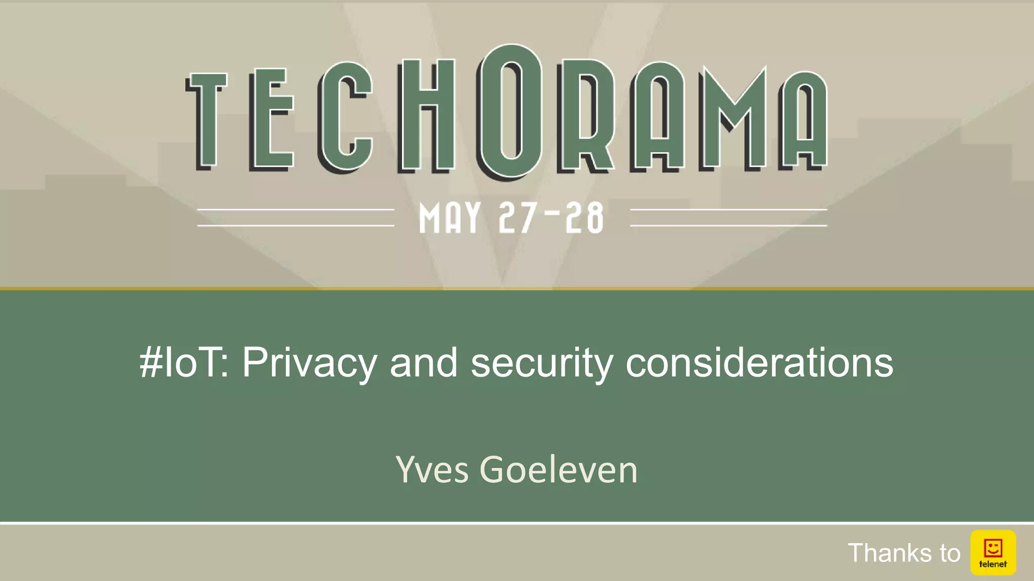 This document discusses privacy and security considerations for the Internet of Things (IoT). It outlines several dangers posed by IoT devices, including lack of physical and virtual security, potential for tampering, and privacy issues if personal data is not properly protected or consent is not obtained. The document then provides options for improving IoT security, such as preventing physical/virtual access, detecting tampering, tracking device identities, analyzing behavior for anomalies, and blocking compromised devices. It also discusses challenges of encryption for low-power devices and the importance of data privacy laws and user consent. Overall, the document examines both security and privacy risks posed by IoT and potential strategies to address them.