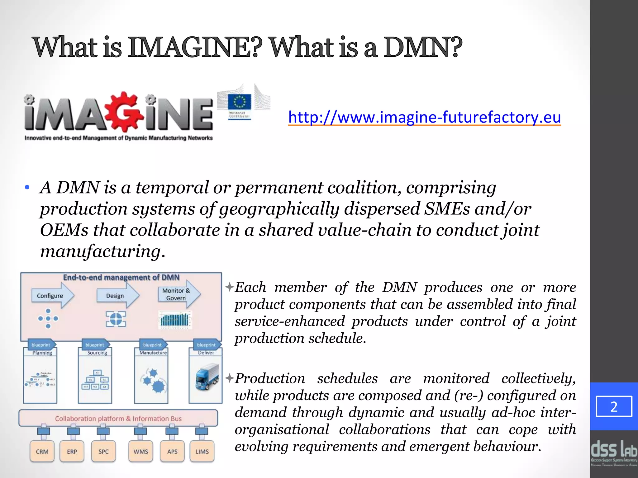 The document discusses how distributed manufacturing networks (DMNs) can utilize internet of things (IoT) technologies. DMNs involve geographically dispersed small- and medium-sized enterprises collaborating on a shared value chain. IoT sensors on machinery, environmental conditions, RFID tags, and other devices can monitor production schedules and compose products on demand. While many IoT technologies exist, combined usage remains limited by interoperability issues. Fully integrating manufacturing data from IoT networks with historical logs could enable real-time processing. Making products and components "smart" through multi-objective devices that collaborate could further optimize factory goals like efficiency. The cloud can help control and provide resources for interconnected IoT and sensor grids.