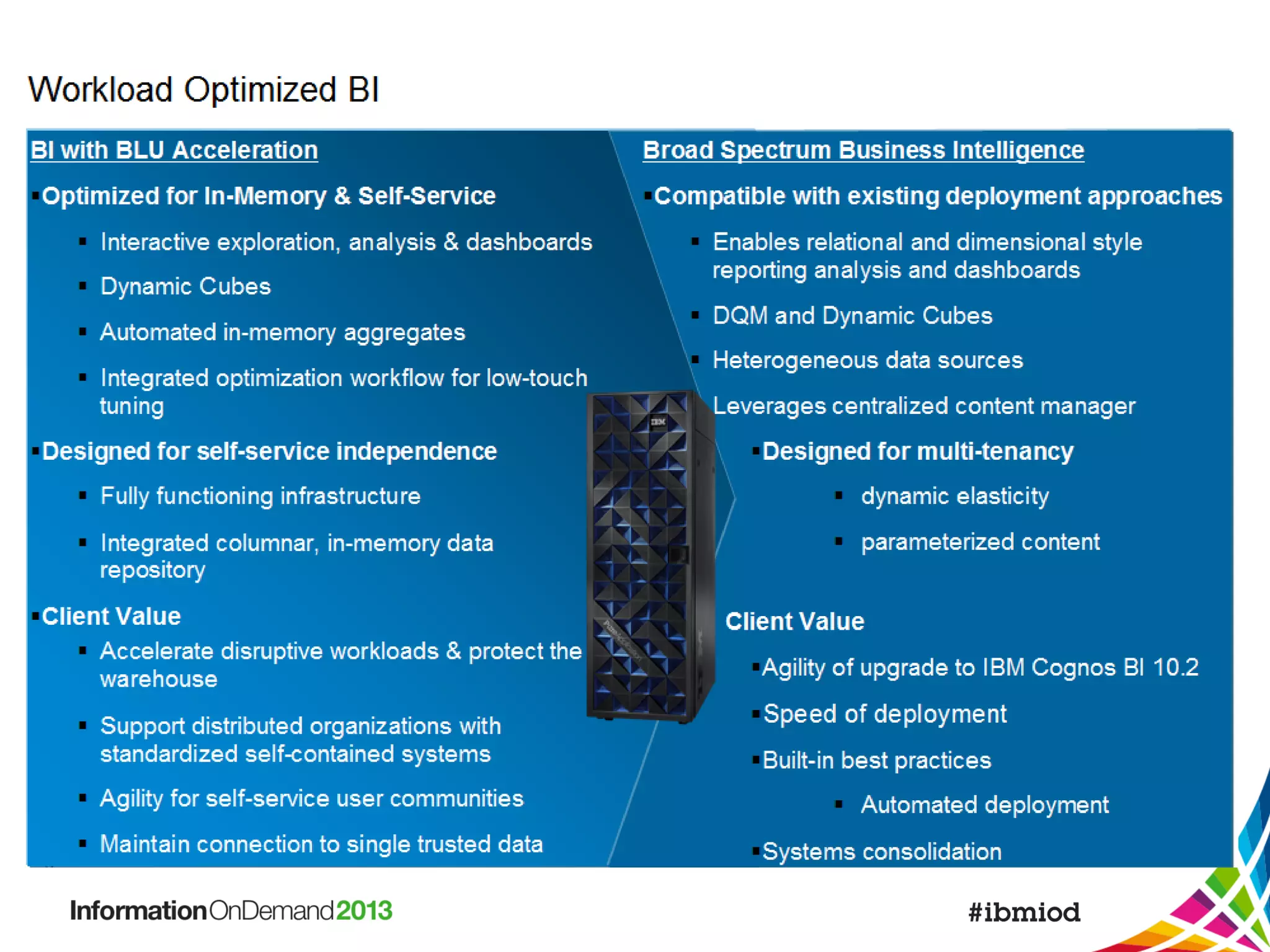 This document provides an overview of the IBM Business Intelligence Pattern with BLU Acceleration. It discusses how this pattern provides a pre-configured deployment for a predictable, high performance analytics solution. It delivers order of magnitude improvements in performance, storage savings, and time to value through the use of in-memory acceleration technologies like Dynamic Cubes and DB2 BLU. Typical performance improvements range from 8-25x over traditional approaches. The pattern allows for a simple, streamlined approach to achieve fast analytics results.