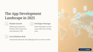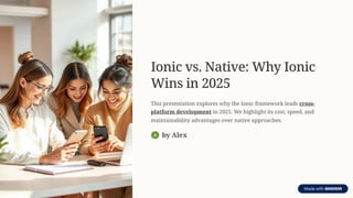 This presentation explores why the Ionic framework leads cross-platform development in 2025. We highlight its cost, speed, and maintainability advantages over native approaches.