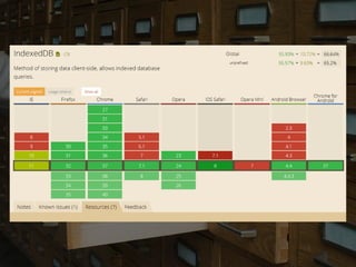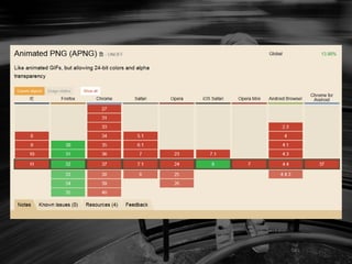 The document discusses features of iOS 8 and the iPhone 6, including screen sizes, new API support, and enhancements in Safari. It outlines technical specifications for viewport sizes, new web design capabilities, and various JavaScript APIs like WebGL and IndexedDB. Additionally, it highlights new features in Safari such as improved tab management and private browsing options.