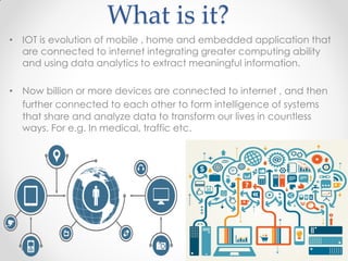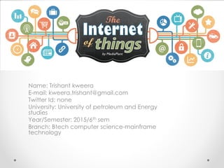 Trishant Kweera discusses the Internet of Things (IoT) as an evolution of mobile and embedded applications connected to the internet, enhancing data analytics for significant insights. He notes the increasing connection of devices and mentions development kits from ARM and IBM that facilitate the creation of IoT devices for users with limited technical experience. Kweera expresses interest in addressing challenges related to security and privacy in data aggregation within smart cities as technology evolves.