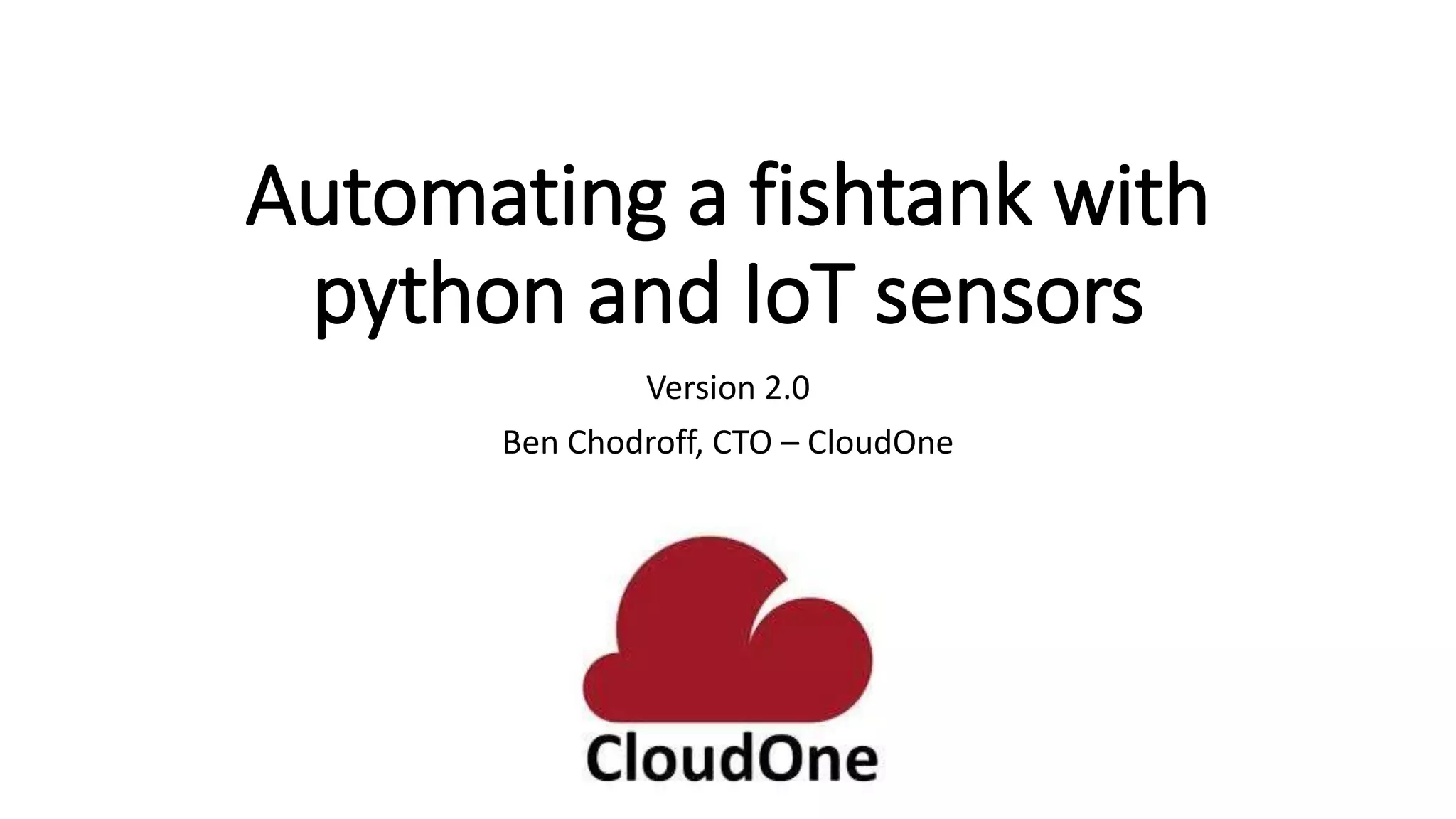 This document describes a Python and IoT-based automation system for managing a fishtank, addressing issues like overflow and maintenance through various sensors. It details the hardware setup, including Raspberry Pi integration, sensors for measuring water levels and quality, and the automation of maintenance tasks such as dosing and alerts. Additionally, it introduces an IoT messaging platform and options for data visualization, while providing sample code and resources for implementation.