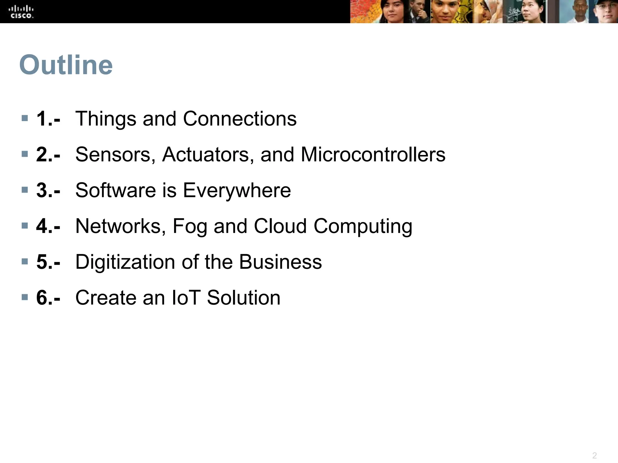 The document outlines the Internet of Things (IoT), detailing its components such as sensors, actuators, and controllers, and discussing the importance of network connectivity, models of communication, and security. It also covers various protocols and architectures essential for IoT systems, the role of wireless technologies, and examples of using small hardware like Raspberry Pi for IoT applications. Additionally, it emphasizes the need for standardization in IoT protocols and security measures to protect user privacy and data integrity.