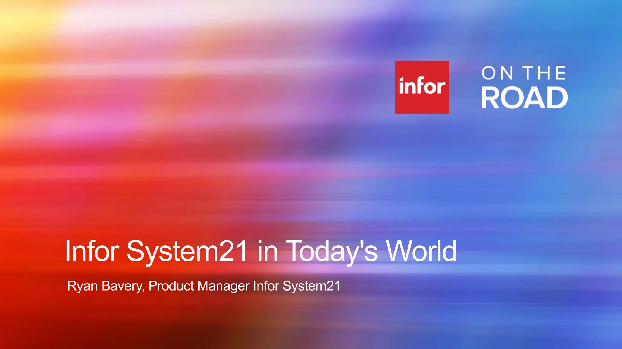 Overview of Infor System21 presented by Ryan Bavery, Product Manager Infor System21. Infor on the Road, September 2013