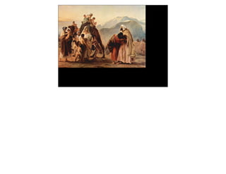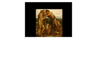 This document discusses the biblical story of Jacob wrestling with God at the Jabbok river on the night before he was to meet his brother Esau. During their wrestling match, Jacob prevails and refuses to let go until he receives a blessing. He is then given a new name, Israel, and survives the encounter with a limp. The next day, Jacob arranges his family in order to appease Esau and is surprised when Esau embraces him warmly.