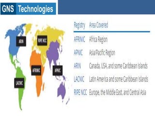 TCP/IP is the protocol that governs internet addressing and routing. The IANA and IETF define IP address types and classes, including Class A addresses from 0-127, Class B from 128-191, and Class C from 192-223. Routing protocols like RIP, IGRP, EIGRP, OSPF, and BGP search for the shortest path between routed protocols like IP, IPX, and Appletalk that carry data packets. IP version 4 uses 32-bit addresses while IP version 6 uses 128-bit hexadecimal addresses.