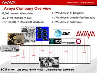 - Avaya is a global provider of business communications and collaboration solutions, with over 18,000 employees worldwide and $4.9 billion in annual revenues.