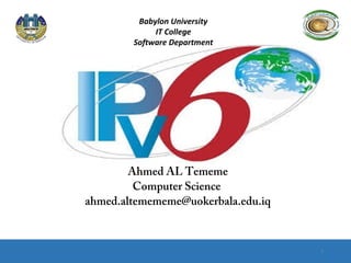 The document discusses IPv6 addressing and how it addresses limitations in IPv4. It notes that IPv6 uses a 128-bit address space compared to IPv4's 32-bit addresses, allowing for many more available addresses. It also describes IPv6 address representation and types, including unicast, multicast, and anycast addresses. Key techniques for IPv4 and IPv6 coexistence like dual stack, tunneling, and translation are summarized. The differences between IPv6 global and link-local unicast addresses are also highlighted.