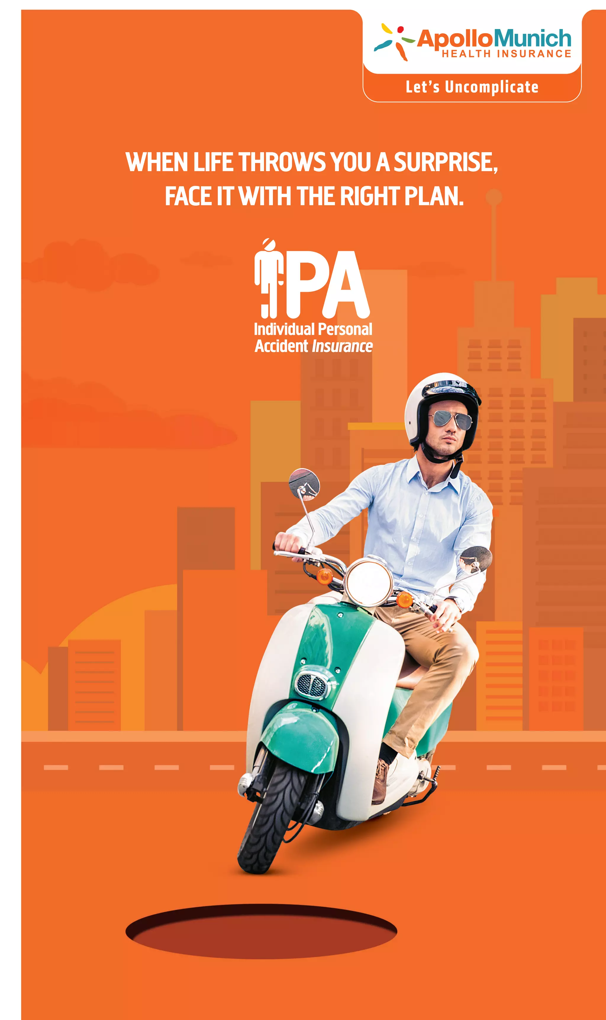 The document provides an overview of the Apollo Munich Individual Personal Accident insurance plan. It summarizes the plan's key benefits like accidental death coverage, income support for temporary disabilities, hospital cash allowances, and coverage for fractures and burns. It outlines three plan options - Essential, Advanced, and Elite - that vary based on the number of benefits and maximum sum insured. The document also highlights eligibility criteria, discounts available, exclusions from coverage, and renewal and cancellation terms.