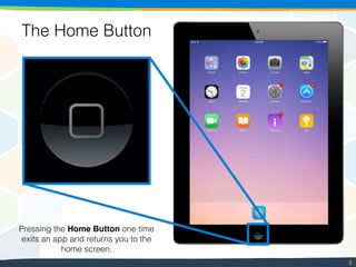 The document provides instructions for common tasks on the iPad, including: