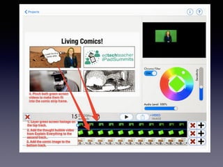 This document discusses iPad content creation tools for students. It lists several apps that can be used for reading, video creation, book making, journaling, and presentation tools. These include Explain Everything, Keynote, iMovie, Creative Book Builder, Book Creator, Pages, Kid's Journal, Stick Around, ThingLink, and NearPod. It also provides some websites for finding iPad education resources and the contact information for the author.