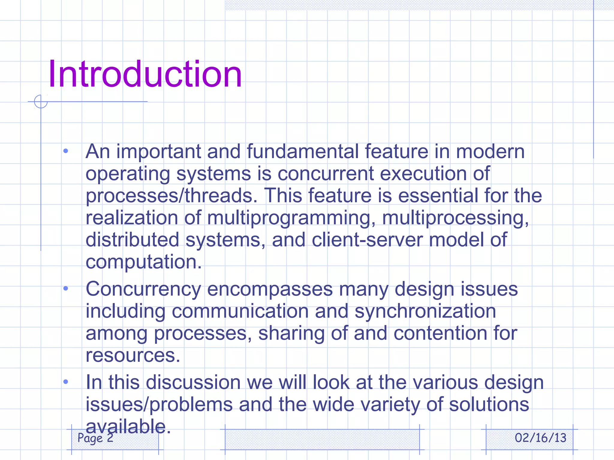 This document discusses inter-process communication and synchronization in operating systems. It covers topics like mutual exclusion, solutions to the mutual exclusion problem using software approaches like Dekker's and Peterson's algorithms, hardware support using test-and-set operations, and operating system solutions using semaphores. It also discusses principles of concurrency and interactions between processes like competing processes and cooperating processes.
