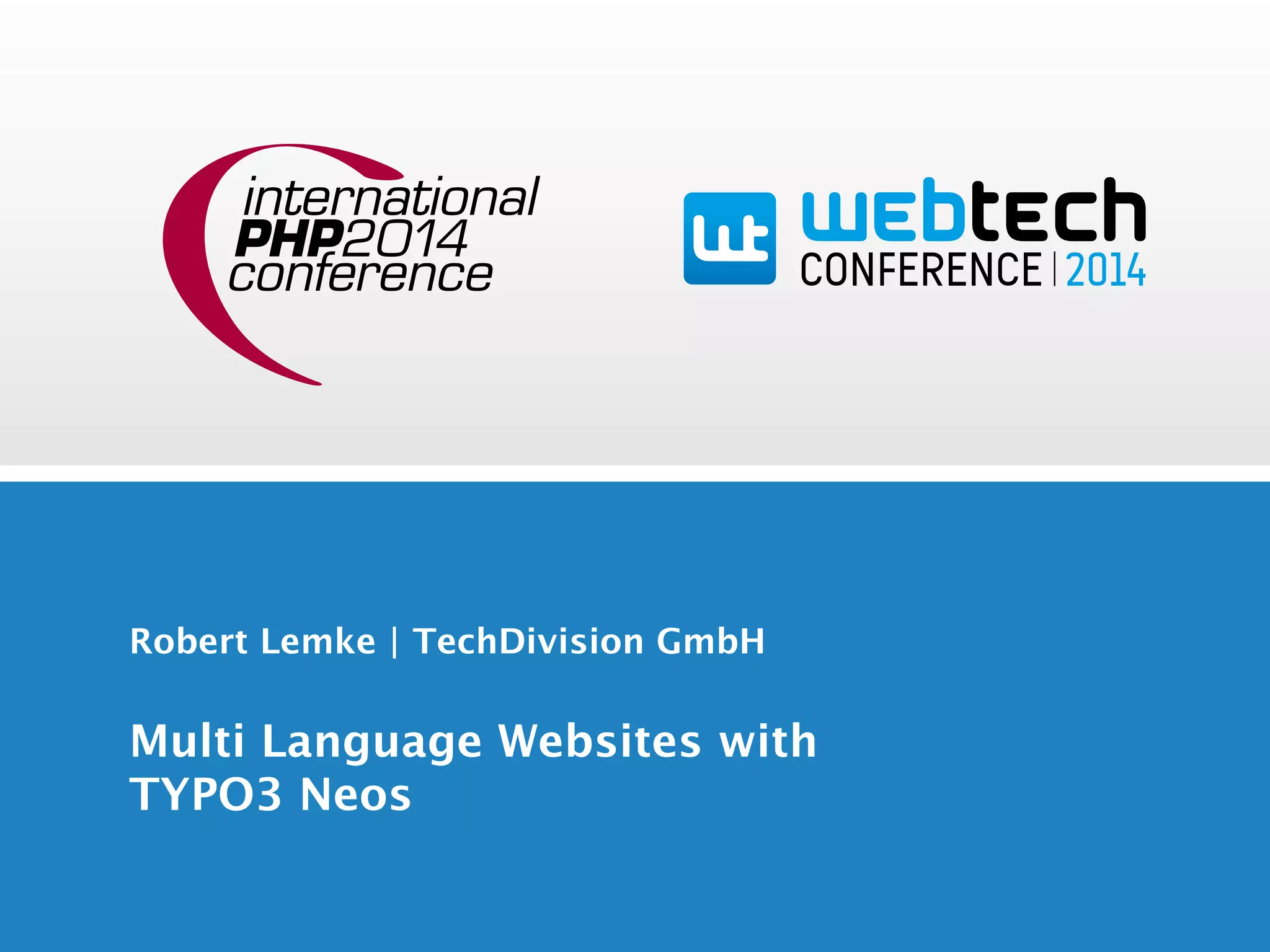 Robert Lemke is a software architect at Techdivision GmbH and a co-founder of TYPO3 Flow and TYPO3 Neos, living in Lübeck, Germany. He highlights the capabilities of multi-language websites using TYPO3, including translations and content management across various languages. Lemke also expresses interests in drumming, climbing, and has a personal life involving his family and an espresso machine.