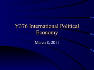 The document discusses the economic strategies pursued by transition economies after the Cold War. Russia elected to pursue a state-controlled energy-based growth strategy, while China elected to pursue its own version of an Asian developmental state model following countries like Japan, Korea, and Taiwan. China's strategy has proven more successful so far, as both China and Russia are growing rapidly now but China's growth has been steadier. The document also notes that transitioning economies in Eastern Europe who pursued shock therapy saw relatively faster transitions than Russia, where the transition was slower.
