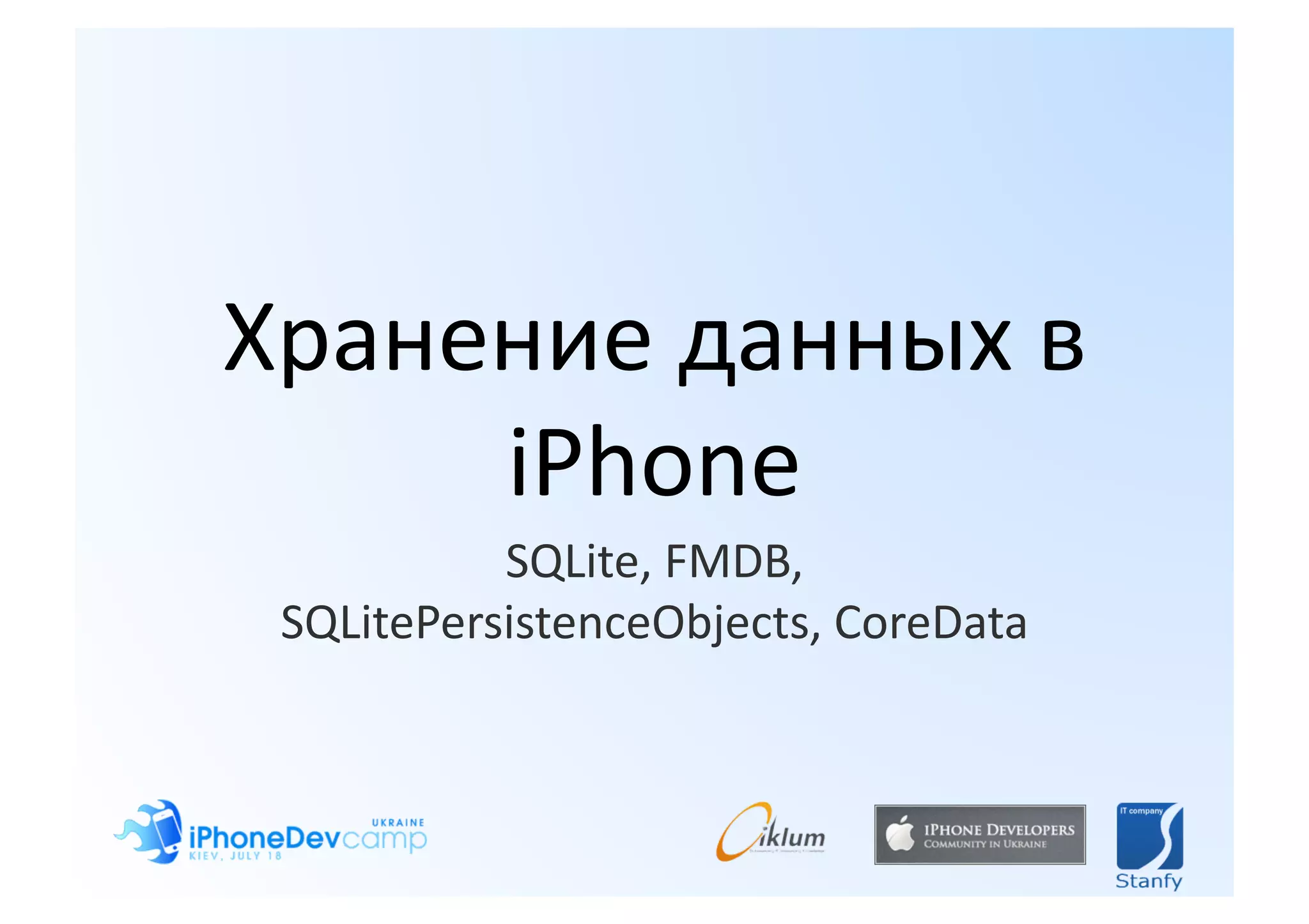 В документе рассматриваются различные способы хранения данных в приложениях iPhone, включая nsuserdefaults, sqlite, fmdb, sqlite persistent objects и core data. Каждый подход имеет свои особенности, включая поддержку SQL, сериализацию объектов и создание таблиц, что требует вовлечения программиста. Рекомендации предоставлены по выбору технологии в зависимости от объема данных и сложности запросов.