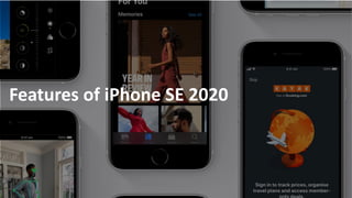 The document summarizes and compares features of the iPhone SE 2020, iPhone XR, and another unnamed smartphone. It notes that the iPhone SE 2020 has the powerful A13 Bionic chip at a good price point in India compared to competition. Though small, it is only slightly heavier than the iPhone 7. However, the document argues that the iPhone XR may be a better choice due its modern design with larger screen, better battery life, and price that is often under 50,000 Rs. It also discusses the XR having the A12 Bionic chip which could face slowdowns after a few years of software updates.