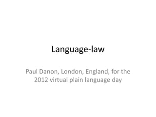 The document discusses the principles of plain writing, emphasizing its importance for clear communication in various contexts, particularly legal writing. It highlights conflicting definitions and guidelines, as well as the challenges in achieving consistency and authority in plain language standards. It concludes that empirical research is needed to better define plain language and guide its legal implementation.