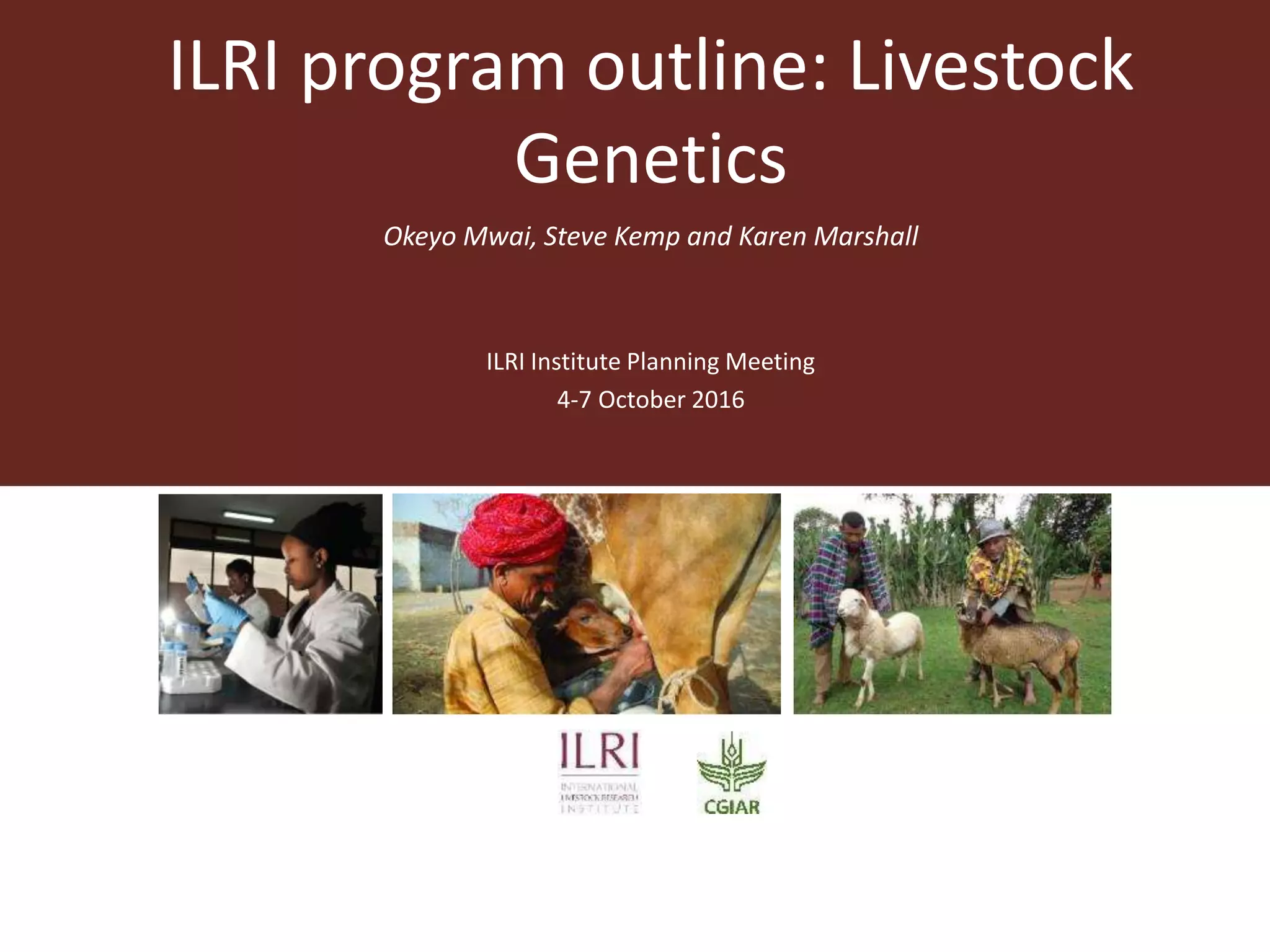 The ILRI Livestock Genetics Program aims to enhance livestock productivity and health by implementing state-of-the-art breeding technologies and improving genetic diversity. The program targets smallholder farmers in Eastern Africa and aims to increase accessibility to improved livestock breeds, leading to better food security and livelihoods. Key objectives include discovering genes responsible for resilience, designing effective breeding programs, and addressing policy gaps to support sustainable use of livestock genetic resources.