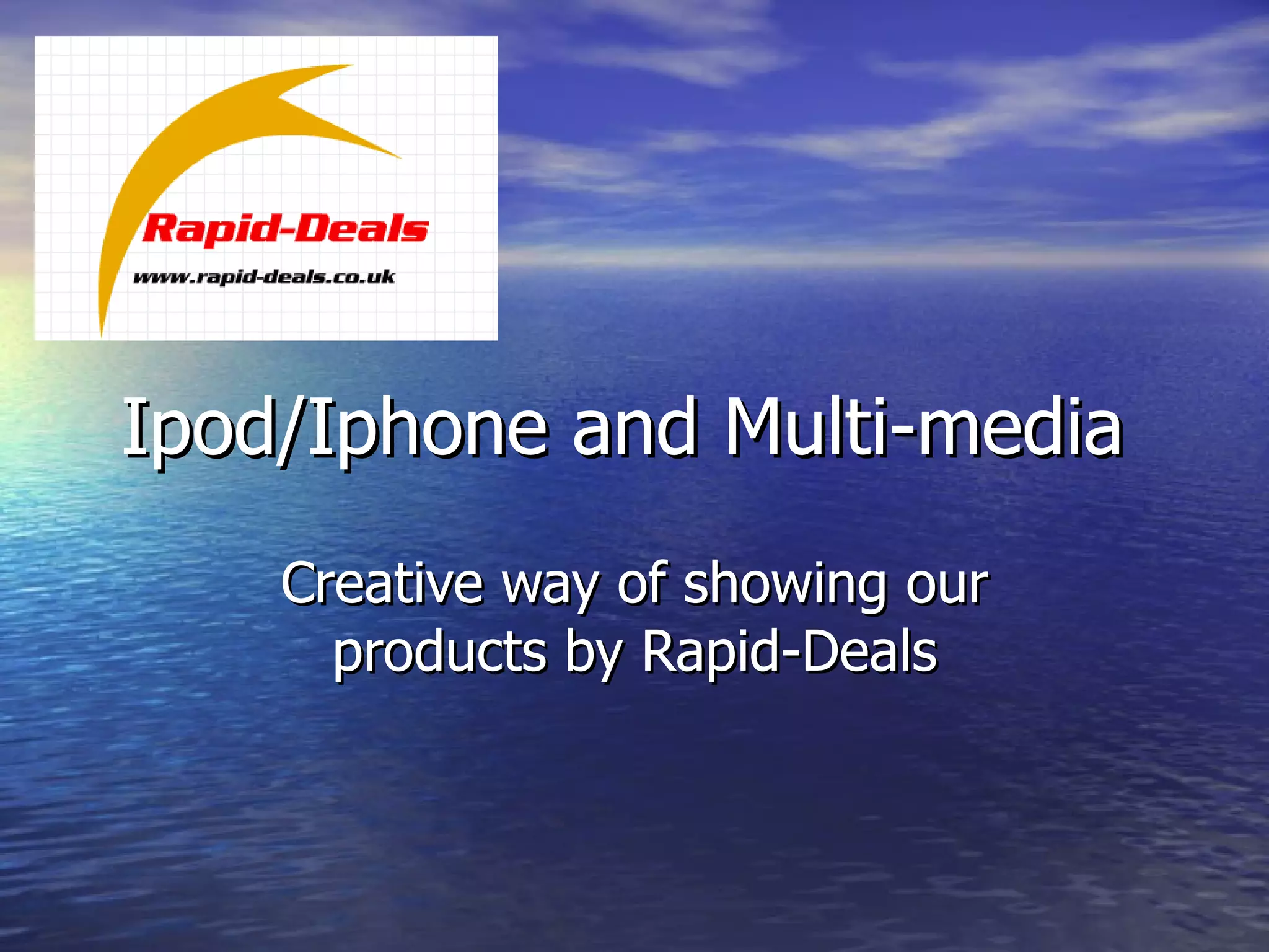 The document describes several products for sale including an iPod/iPhone charger for use in the UK, iPod socks, a microphone and headphones set for singing along to music, an iPod/iPhone cleaning kit, a USB audio adapter for 3D sound, and an iPod/iPhone car charger. The products are being offered for sale by Rapid-Deals and purchasing instructions are provided at the end.