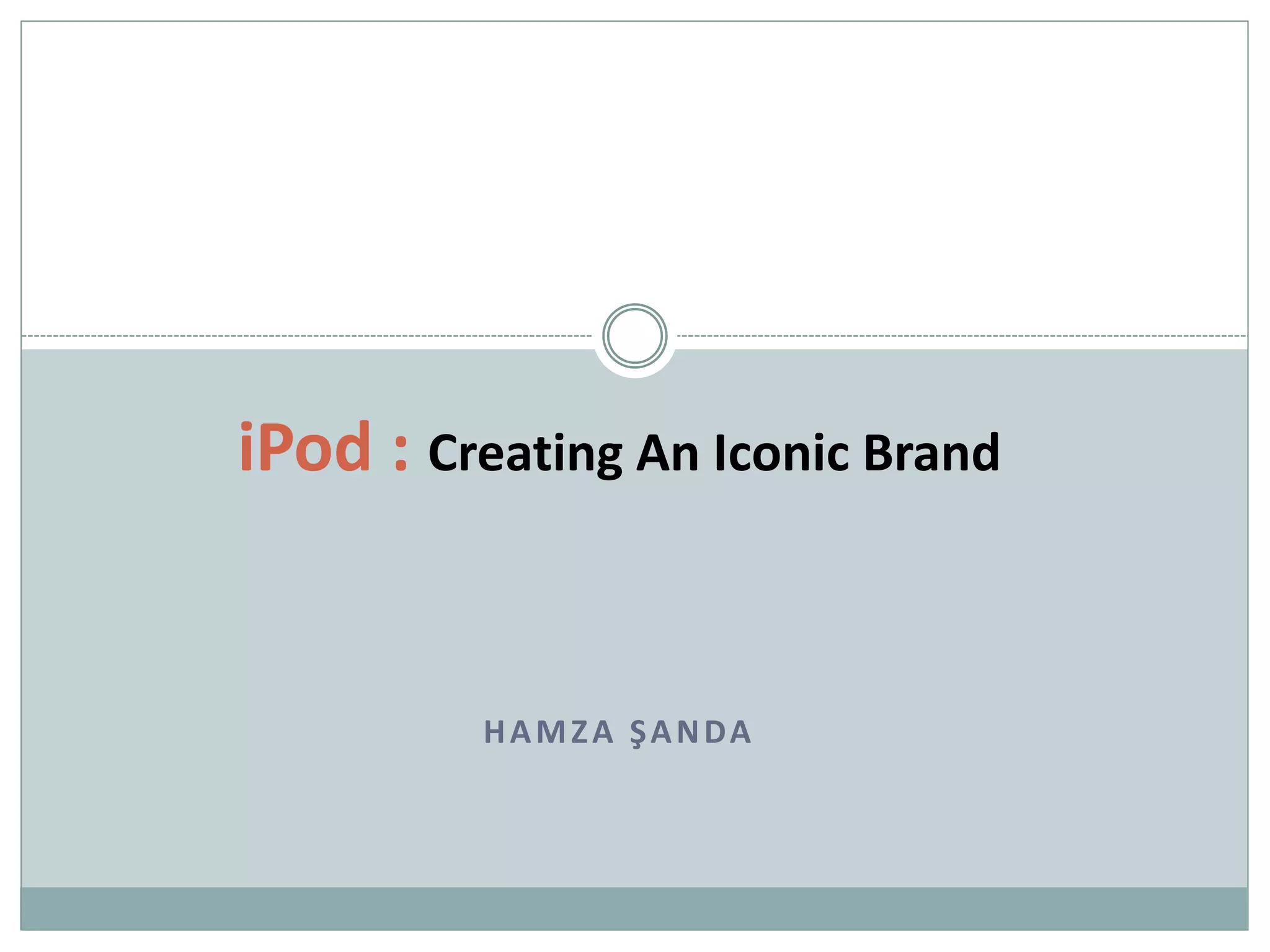 The iPod was launched in 2001 as a portable music player that stored audio files. It had a simple interface with a click wheel for navigation. Over time, Apple expanded the iPod line and increased storage capacity. They sold over 275 million iPods from 2001 to 2011. Apple carefully developed the iPod brand through iconic silhouettes in ads, exclusive partnerships, and a large distribution network beyond Apple stores. The iPod's success was driven by its ease of use, large storage, and integration with the iTunes store, creating a closed digital ecosystem around the product.