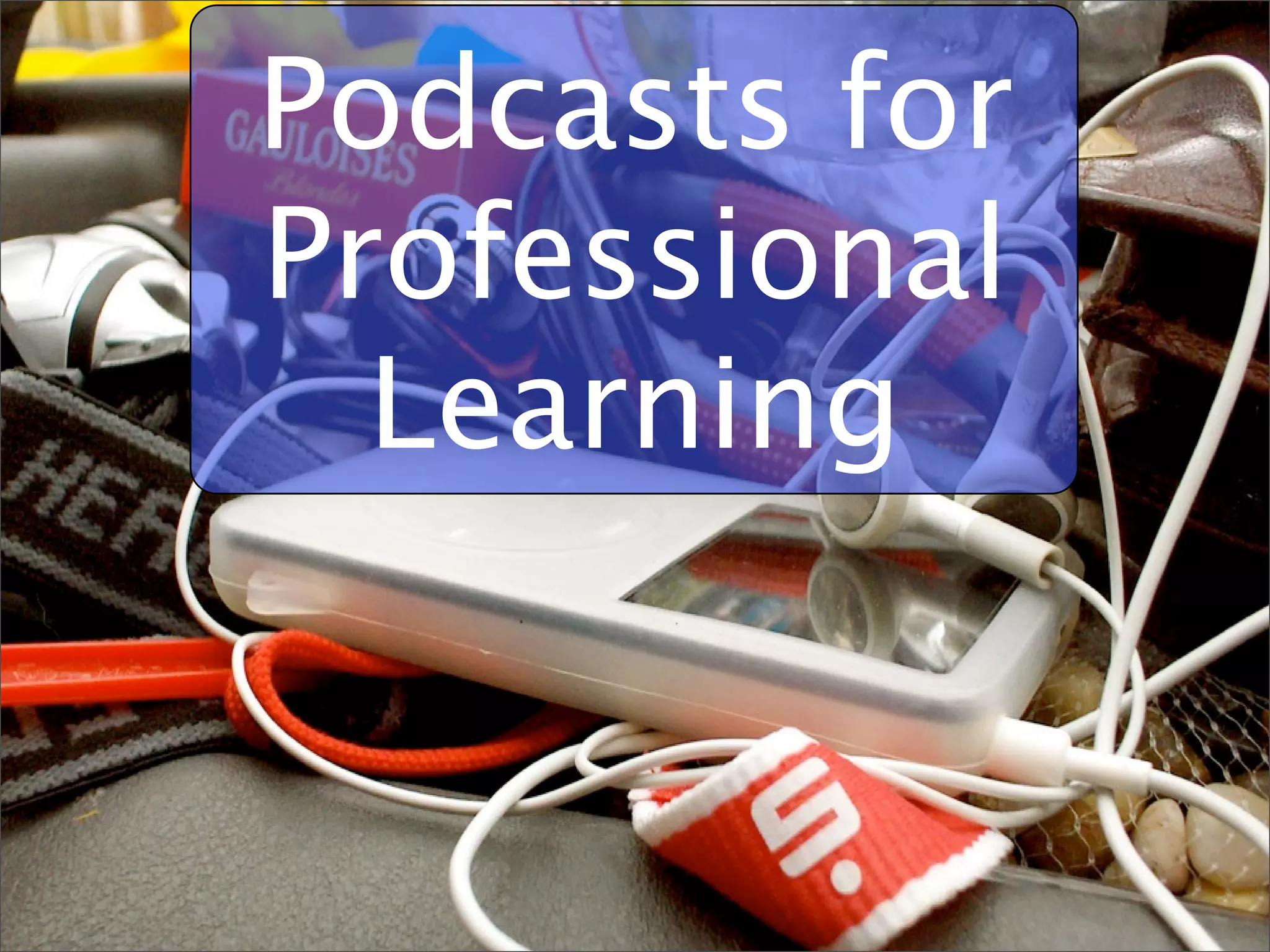 Podcasts are effective and convenient tools for professional learning, especially for auditory learners. They can enhance teacher professional development by demonstrating the use of technology in the classroom. The document outlines the benefits of using iPods for accessing quality professional development sessions through podcasts.