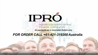This document provides pricing and specifications for various mobile phones available from FCA Hong Kong. The phones range in price from $34.5AUD to $140.6AUD and include basic to high-end models. Key details provided for each model include the processor, memory, screen size, battery capacity, and network bands supported. Payment must be made in Australian dollars and shipping is included within Australia. Larger orders may require purchasing additional units to meet specified ratios between phone models.