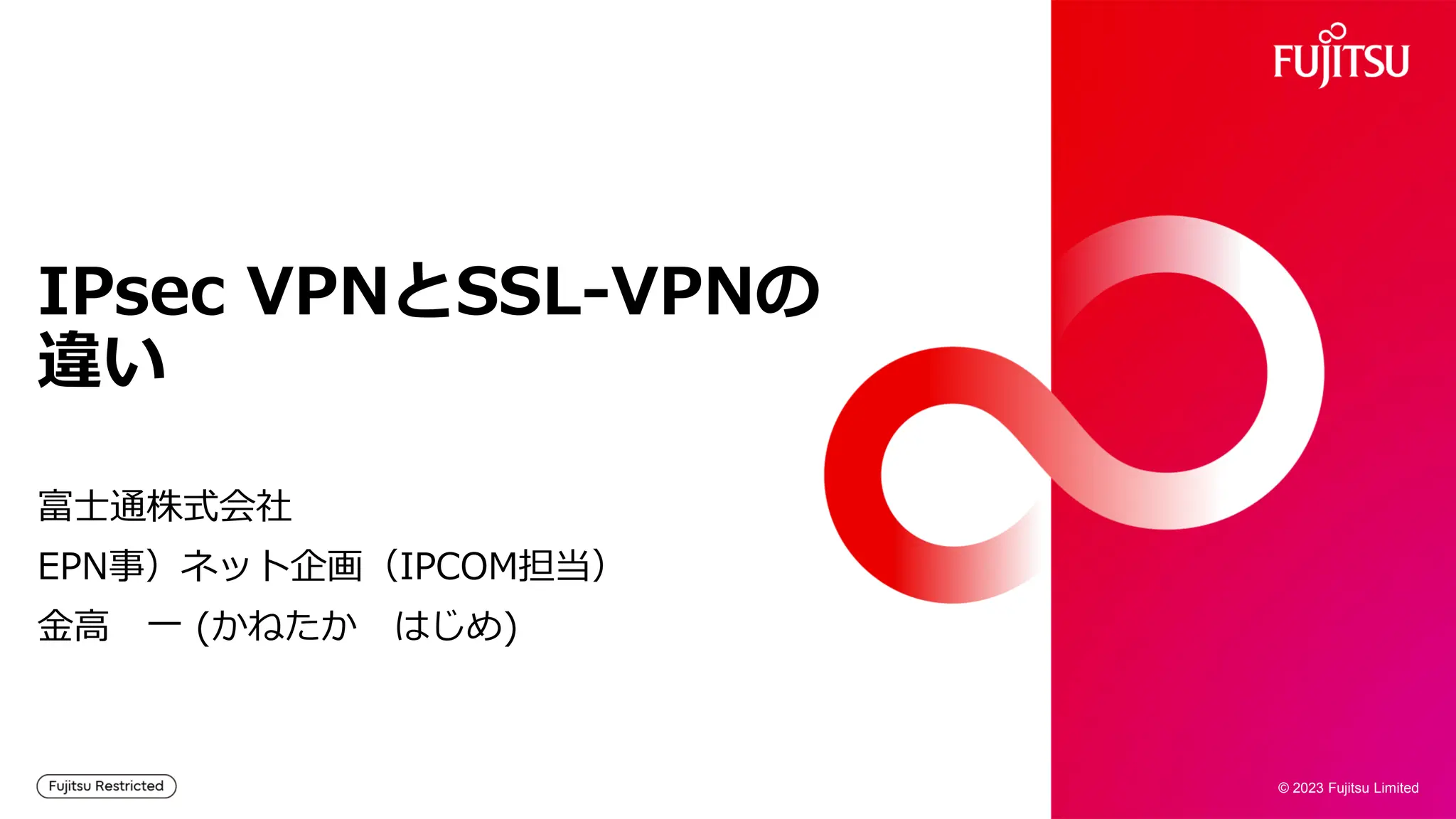 第66回ニフクラエンジニアミートアップ「サーバー管理者のためのセキュリティ超入門」における、富士通株式会社 EPN事)ネット企画(IPCOM)金高一氏のセッション「IPsec VPNとSSL-VPNの違い」のスライド