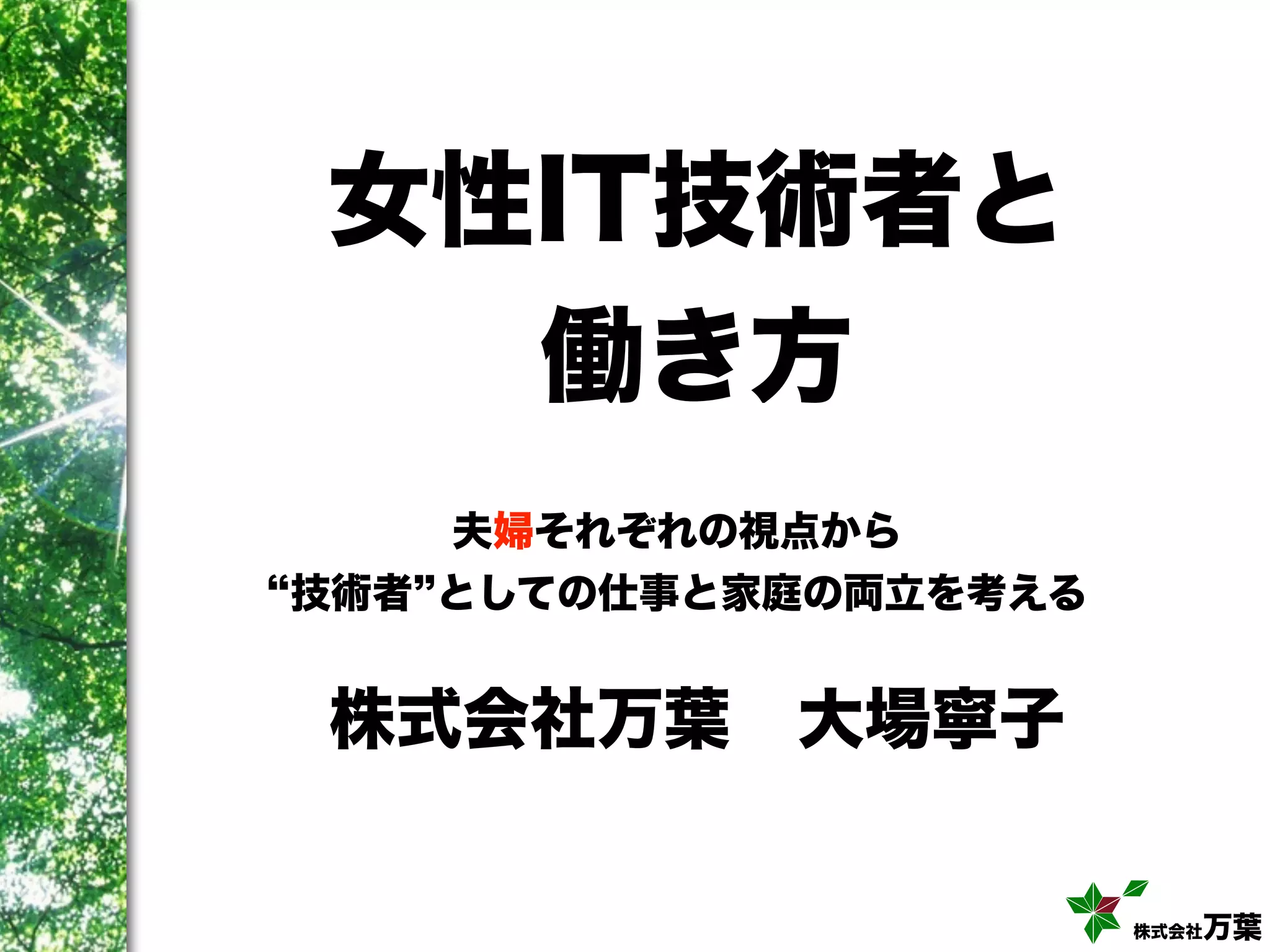 株式会社万葉 女性IT技術者と 働き方 株式会社万葉 大場寧子 夫婦それぞれの視点から 技術者 としての仕事と家庭の両立を考える