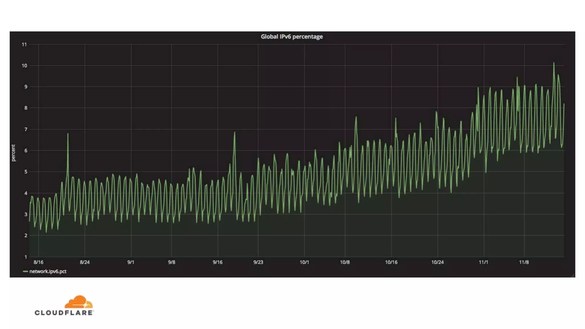 Martin J. Levy, an expert in IPv6 and TCP/IP, presents Cloudflare's initiatives regarding IPv6, emphasizing that IPv6 is now on by default for most accounts. Cloudflare enhances internet performance, security, and reliability through its global anycast network, which includes DDoS protection and managed DNS services. The document also discusses technical details, historical developments, and future plans related to IPv6, including improvements in DNS functionality.