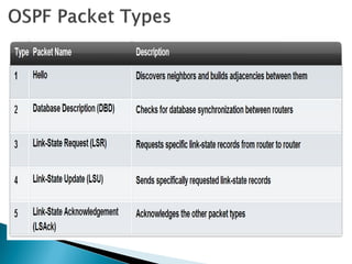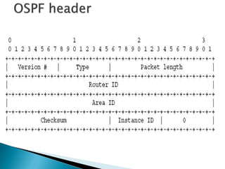 Distance vector protocols like RIP propagate routing tables between routers periodically. They are simple to configure but slow to converge. Link state protocols like OSPF use link state advertisements to build a map of the network and calculate the lowest cost paths more quickly. OSPF divides large networks into areas to reduce routing table sizes and convergence times. It elects routers on area borders to aggregate routing information between areas.