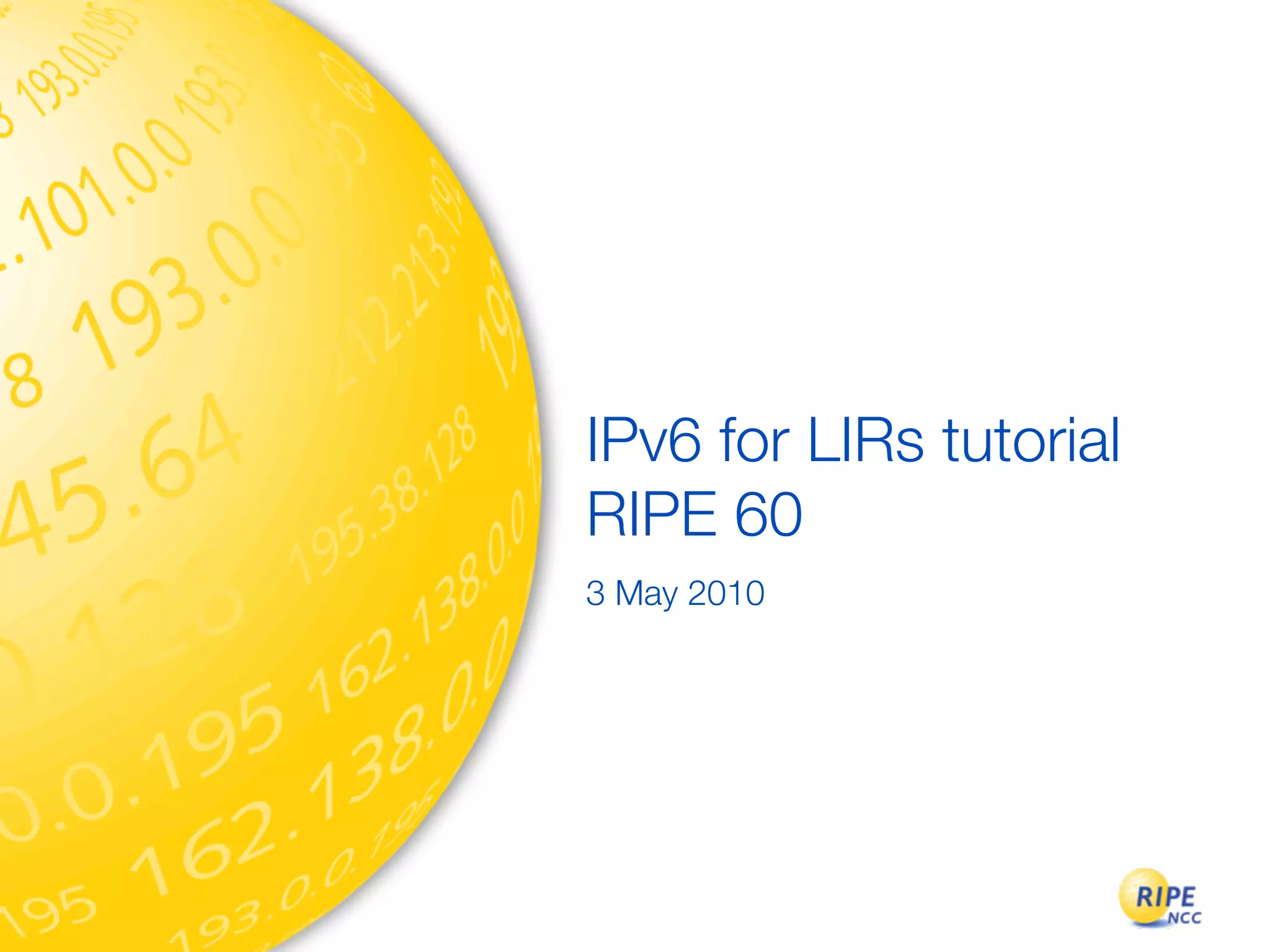 IPv6 adoption is increasing due to the depletion of available IPv4 addresses. The document discusses IPv6 allocation timelines, the need to reach more internet users, and transition techniques from IPv4 to IPv6 like dual stacking and tunneling. It provides guidance on obtaining IPv6 allocations and assignments, addressing and routing, and a phased approach to deployment within an organization.