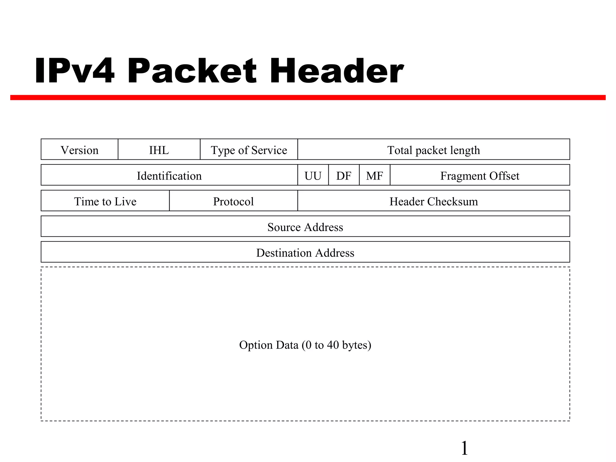 The document describes the headers for IPv4 and IPv6 packets. IPv6 packet headers are simpler than IPv4 headers, with fewer fields but larger source and destination addresses. IPv6 also introduces extension headers to replace IPv4 options and allow additional optional information to be included. The transition from IPv4 to IPv6 will involve dual-stack implementations and tunneling IPv6 packets in IPv4 networks using special address types.