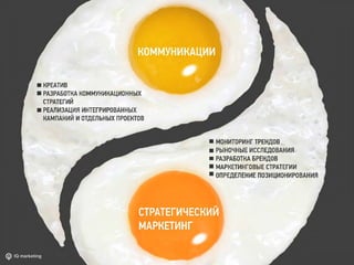 Документ представляет собой анализ агентства IQ Marketing, отмеченного как одно из лучших в мире, и описывает его успешные проекты по ребрендингу и маркетинговому исследованию для различных клиентов, таких как сеть аптек и магазинов электроники. Примеры успешных изменений включают значительный рост продаж, переработку целевых аудиторий и улучшение имиджа брендов. В документе также упоминаются высококвалифицированные эксперты и результаты, подтверждающие эффективность методов IQ Marketing.