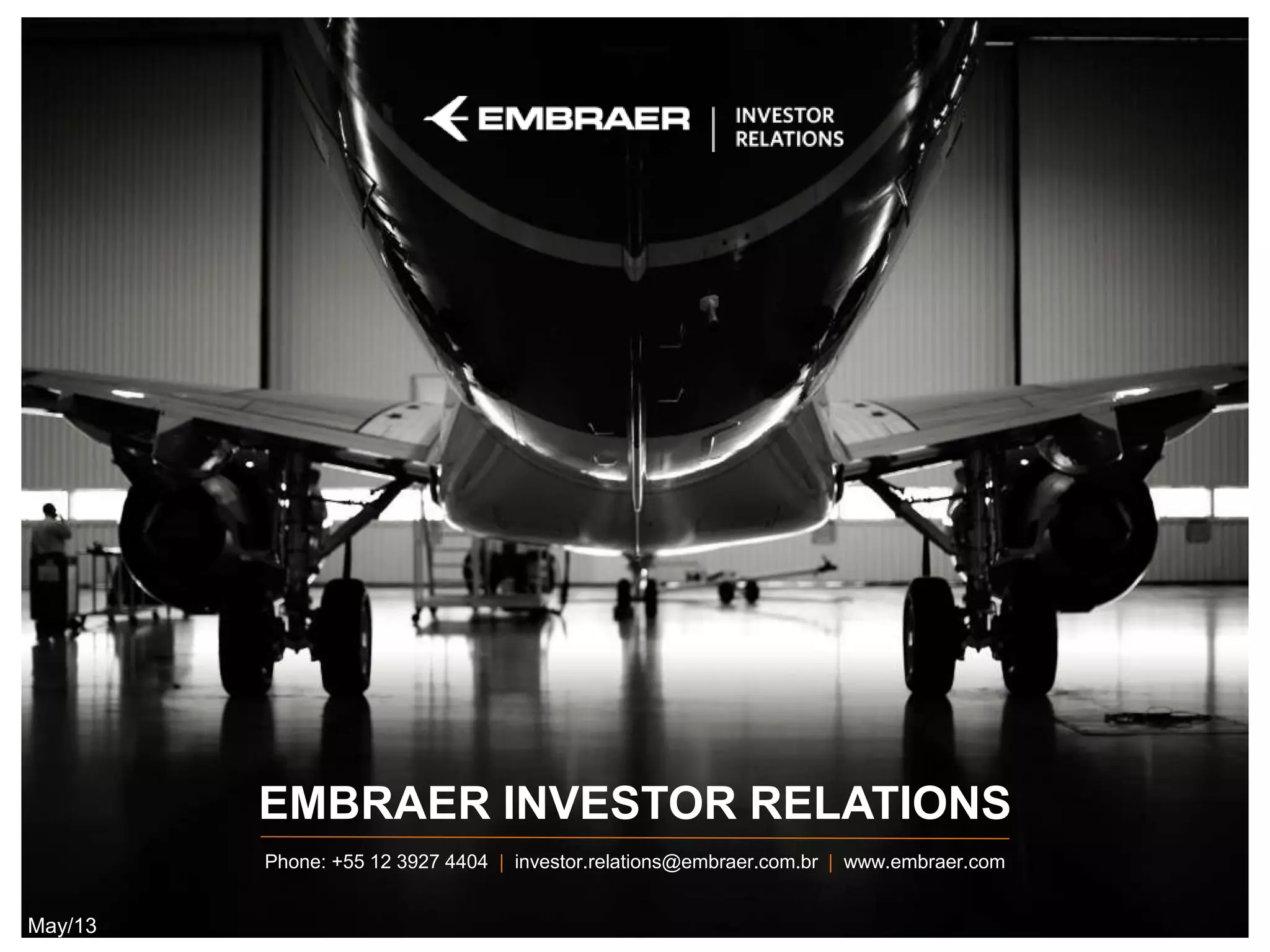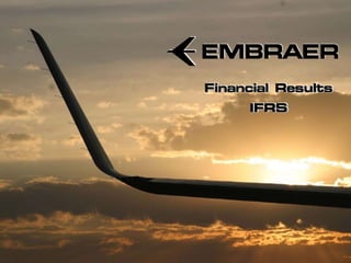 This document provides an overview of Embraer's business strategy, financial performance, and outlook. Some key points: