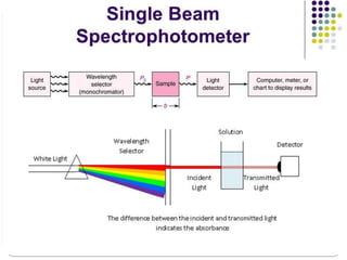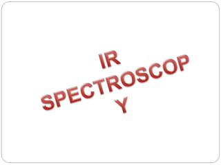 This document provides an overview of infrared spectroscopy (IR) and its applications. It discusses the IR regions, the principles of IR which involve molecular vibrations and interactions with IR radiation. It describes fundamental vibrations such as stretching and bending, and instrumentation used including sources, sample handling, and detectors. Fourier transform IR is highlighted as a preferred method. Applications include detection of impurities, protein quantification, forensic analysis, and studying reaction progress and molecular structure identification.