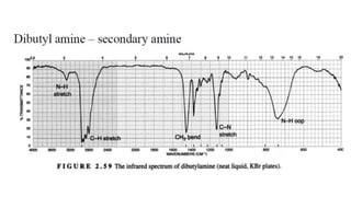 Secondary amines – one band; weak for aliphatic amines but stronger for