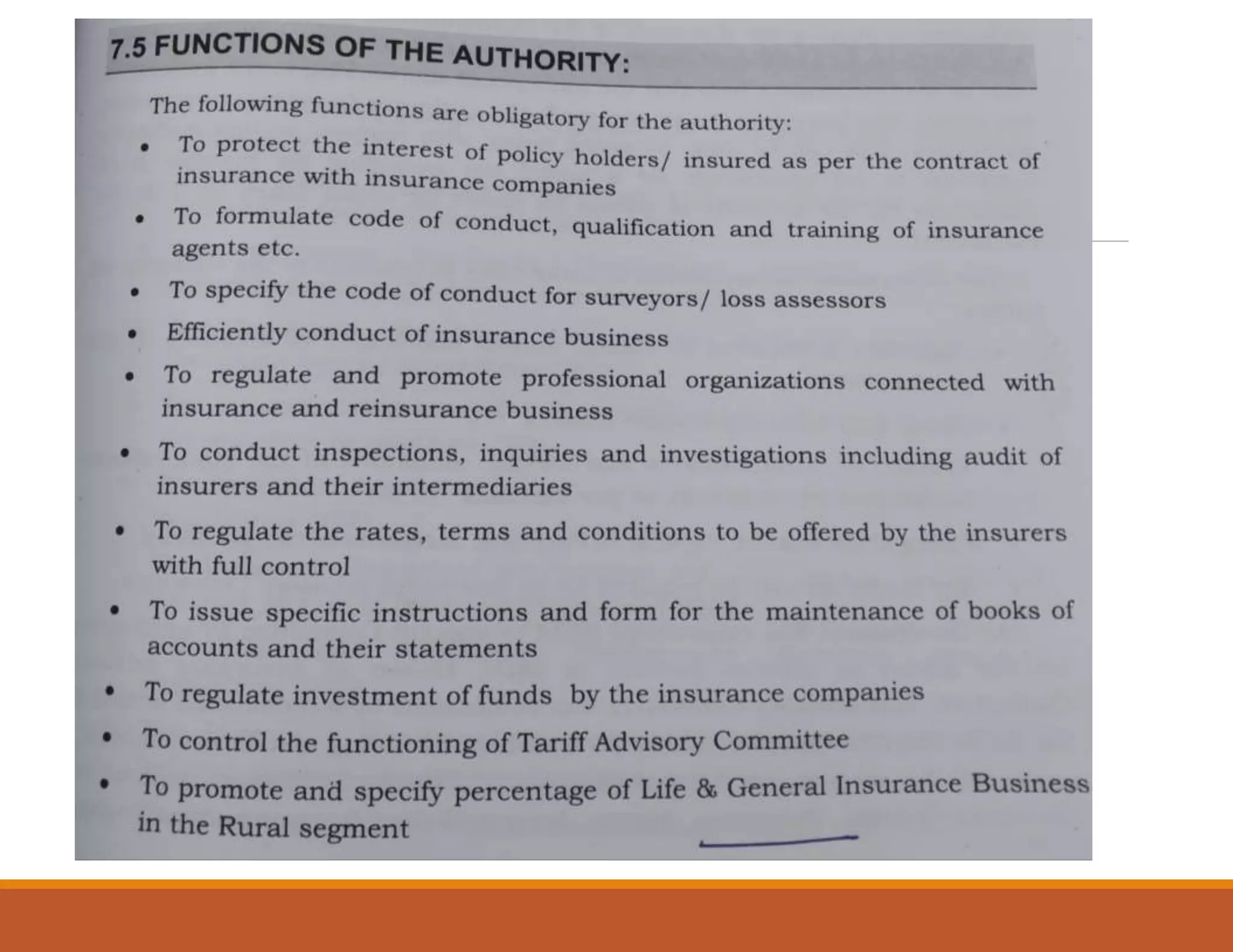 - IRDA has duties like protecting policyholders, promoting the industry's growth, enforcing high standards, and ensuring proper conduct in financial markets dealing with insurance.