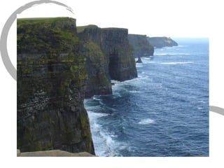 This document provides a tour of sights to see in Ireland, including Dublin, Kilemore Abbey in Connemara, Galway, the Sky Road, the Burren, Cliffs of Moher, Bunratty Castle, Killarney, Limerick, Cork, Carlow and its Steam Machine Festival, Adare, and Wexford. The tour highlights cities, natural landscapes, and historic castles across Ireland before concluding in Wexford.