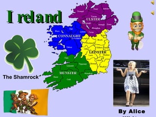 The flag of Ireland represents Catholics, Protestants, and peace between the two groups. The shamrock symbolizes the Trinity and was used by St. Patrick to explain Christianity. St. Patrick incorporated Celtic symbols and converted many Irish to Christianity in the 5th century. St. Patrick's Day has evolved from a religious holiday to an international celebration held on March 17th.