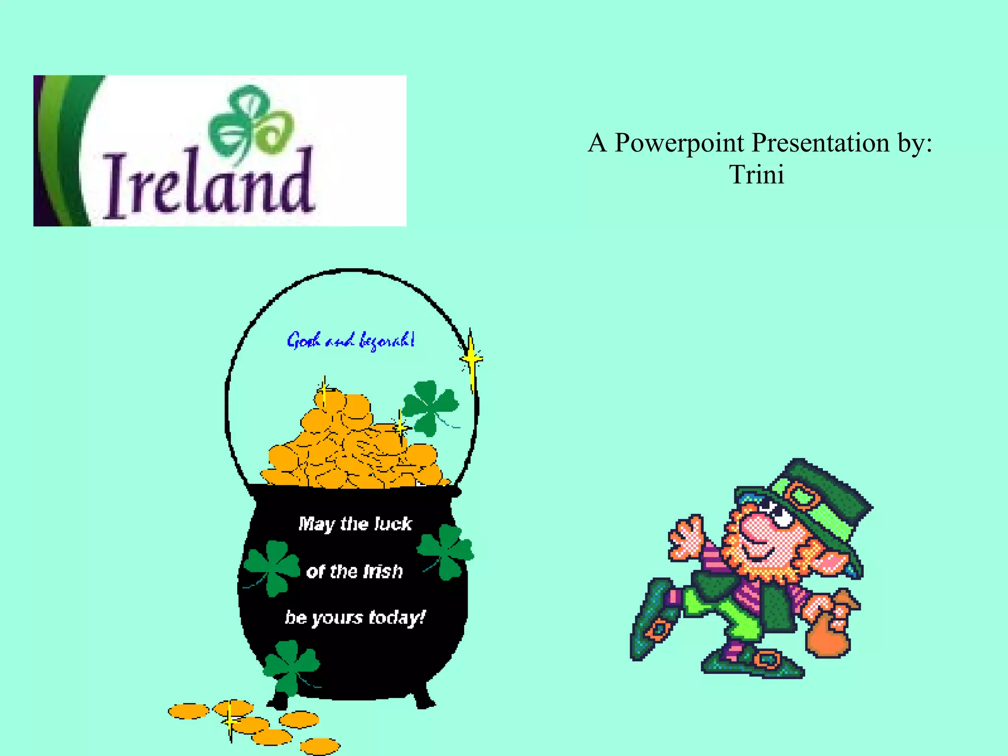 Ireland is an island located west of the United Kingdom, with Northern Ireland being part of the UK. Ireland experiences rainy weather which keeps the landscape very green. The flag of Ireland represents Catholics, Protestants, and the hope for peace. St. Patrick's Day is the national holiday celebrated on March 17th to honor the patron saint. While English is most commonly spoken, some Irish Gaelic remains. Folktales and myths help explain geographical formations like the Giant's Causeway. Traditional Irish culture includes music, dance, and celebrating holidays that commemorate Irish heritage and spring.