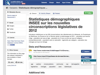 The document discusses the Open Knowledge Foundation's efforts to promote the reuse of open data, emphasizing its role in innovation, government transparency, and economic empowerment. It outlines the steps for making data more accessible and manageable through tools like CKAN, which supports data discoverability and interoperability. The initiative seeks to address challenges related to finding and using valuable datasets in a digital environment.