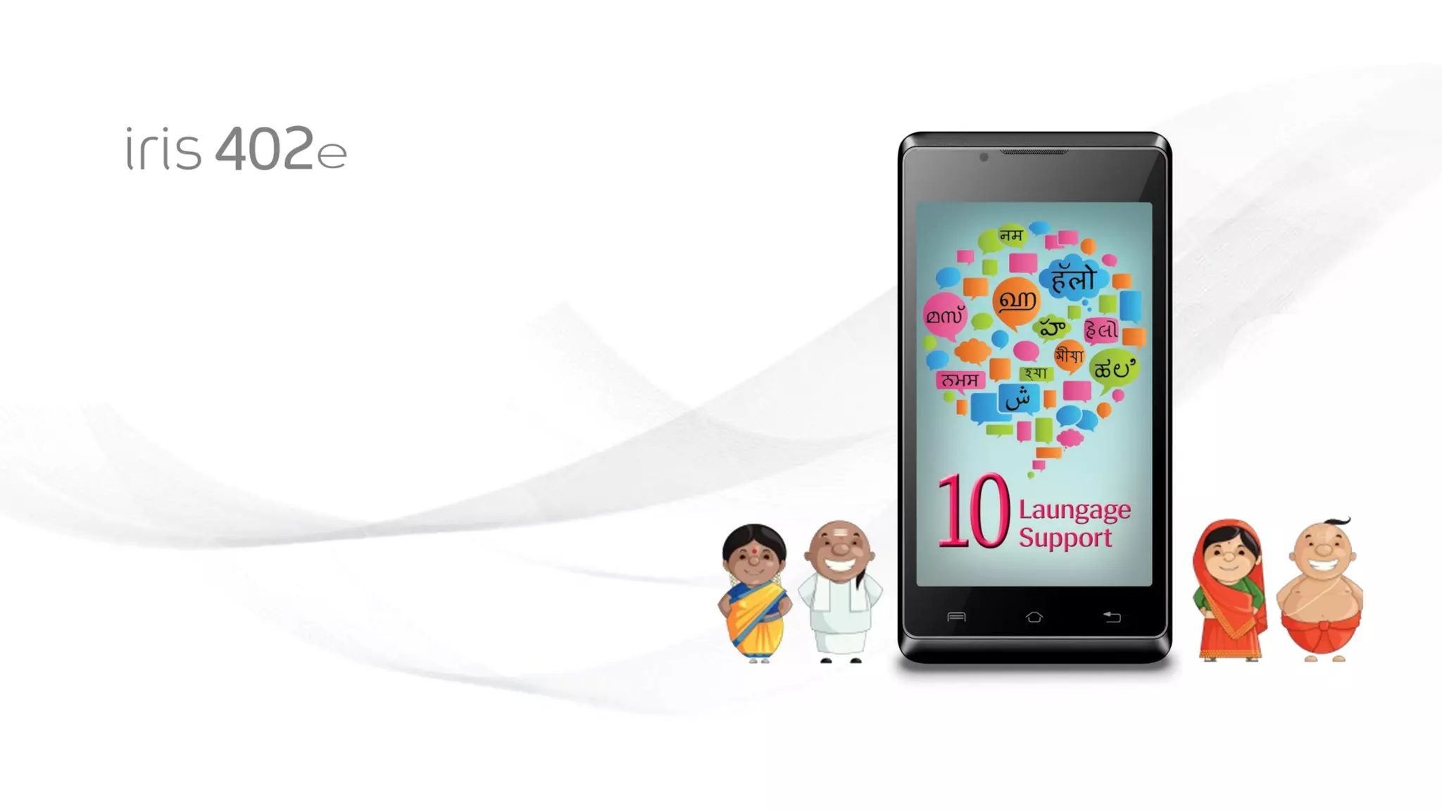 The document presents the features and specifications of the Iris 402E smartphone, highlighting its 10 language capability, 1.3 GHz dual-core processor, and sleek design. It includes a 4-inch WVGA touchscreen, a 3.0 MP rear camera, and runs on Android Jelly Bean v4.2, offering several pre-installed apps for enhanced functionality. The smartphone is available in various colors and supports dual SIM functionality, ensuring compatibility and convenience for users.