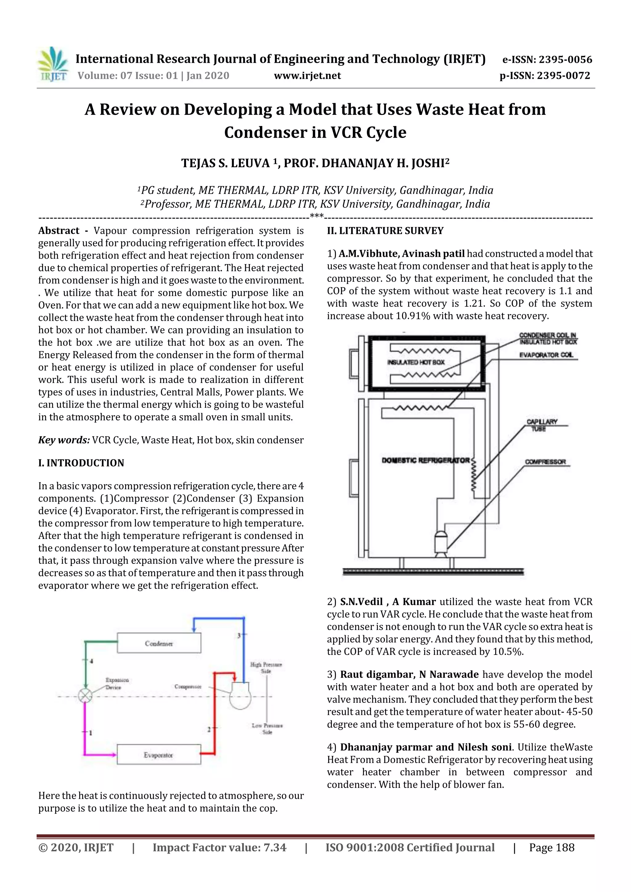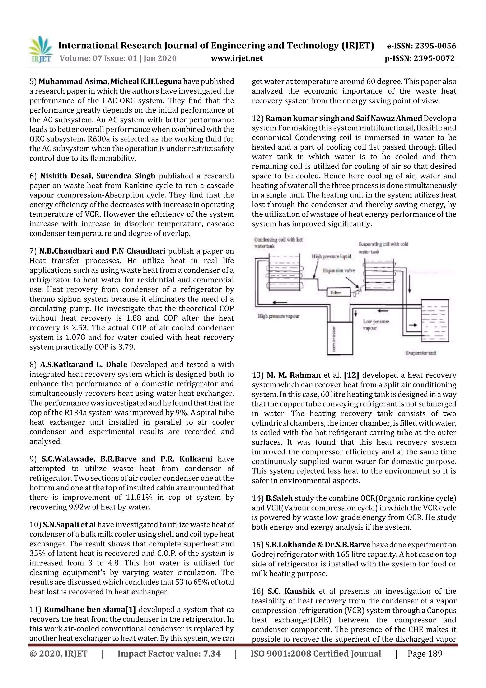 This document reviews several studies on developing models to utilize waste heat from the condenser in a vapor compression refrigeration cycle. Key findings from the studies include:
