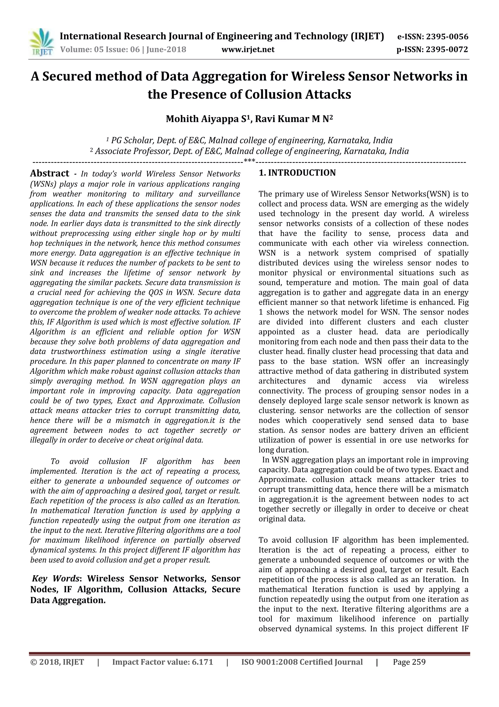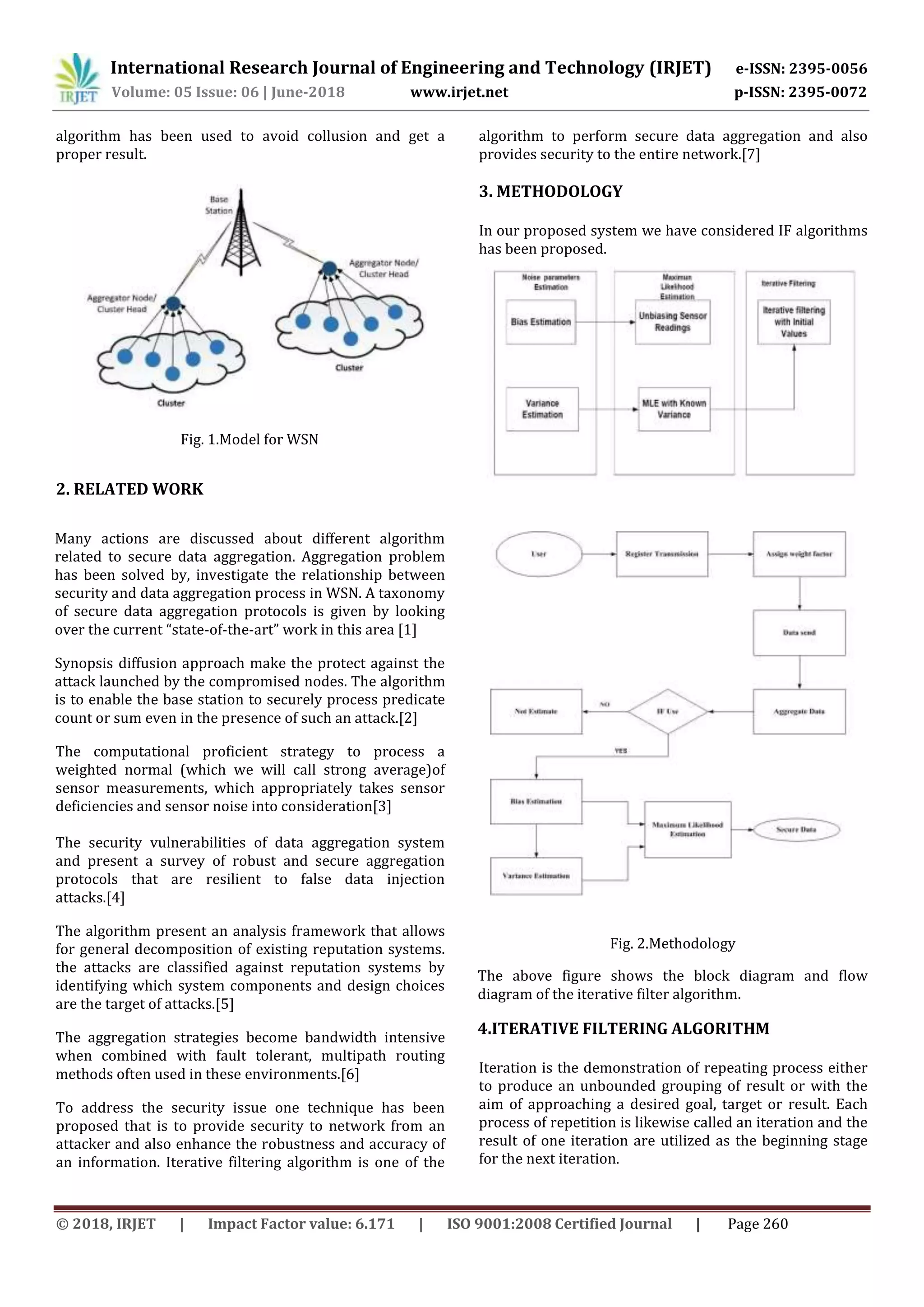 This document summarizes a research paper that proposes using iterative filtering (IF) algorithms to securely aggregate sensor data in wireless sensor networks in the presence of collusion attacks. Collusion attacks occur when nodes secretly or illegally agree to corrupt transmitted data, causing a mismatch in data aggregation. The paper aims to implement IF algorithms to avoid collusion attacks. IF algorithms work by repeatedly applying a function, using the output of one iteration as the input for the next. This helps maximize the likelihood of inferring accurate data from partially observed systems. The document outlines the methodology, benefits of IF algorithms, and basic steps of how they are implemented.