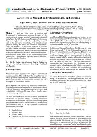 The document describes a proposed methodology for creating an autonomous navigation system using deep learning. Key aspects of the proposed methodology include: