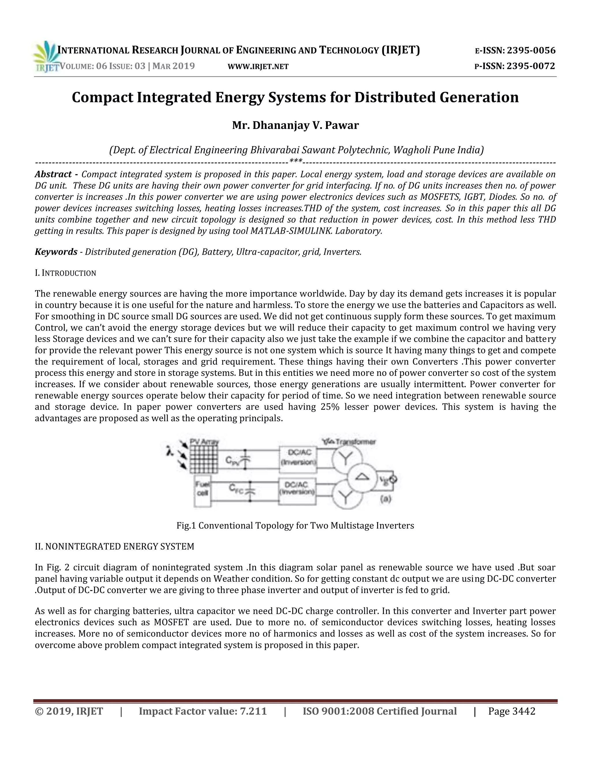 1) The document proposes a compact integrated energy system for distributed generation that combines multiple distributed generation units, local loads, and storage devices into a single system. This reduces the number of power converters and devices needed, lowering costs and power losses.